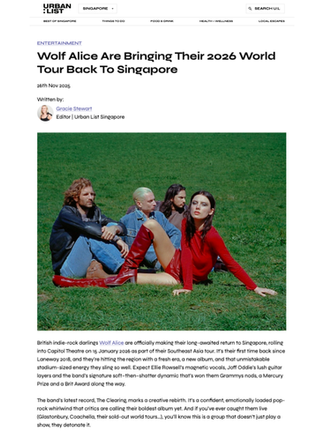 Their return to Singapore carries the same sense of full-circle momentum that defines this new era. Last seen in the city at Laneway Festival in 2018, Wolf Alice now arrive with a catalogue that has continued to grow in scale and influence. The upcoming performance promises an immersive showcase of both their past and present, marking their most anticipated Singapore show to date and leading their Southeast Asia tour with intention and renewed artistic clarity.
